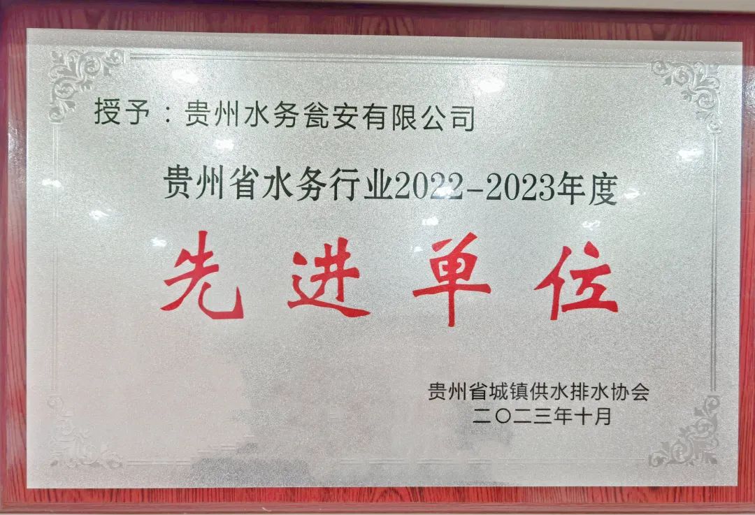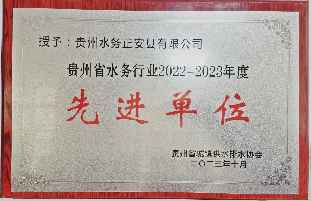 【概要描述】貴州水務(wù)甕安有限公司、貴州水務(wù)正安縣有限公司獲“省城鎮(zhèn)供水排水協(xié)會2022-2023年度‘先進單位’稱號”;甕安公司負責人周軍、正安公司負責人肖建強榮獲“省城鎮(zhèn)供水排水協(xié)會2022-2023年度‘優(yōu)秀管理者’稱號”。